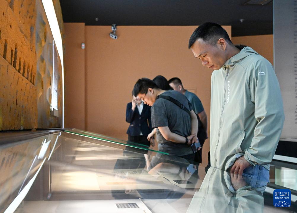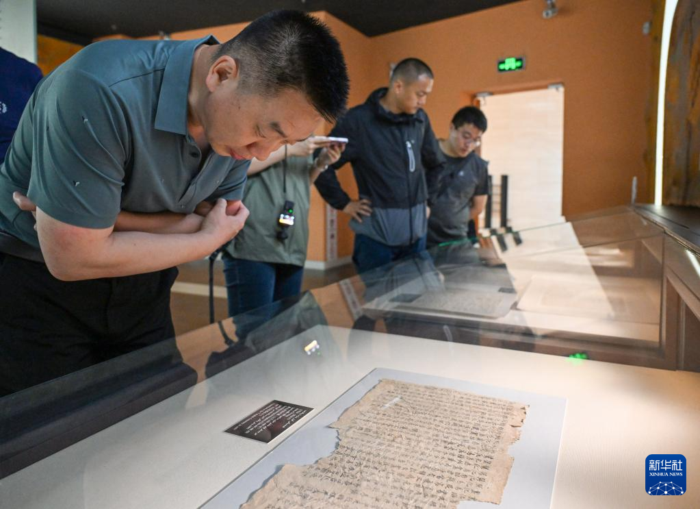 5月14日,游客在吐鲁番博物馆文书展厅参观。