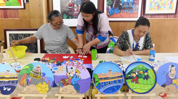 7月2日,陈世英向媒体记者介绍自己的作品。