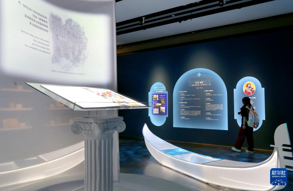 7月3日,参观者走在马可·波罗奇迹之旅展厅内。