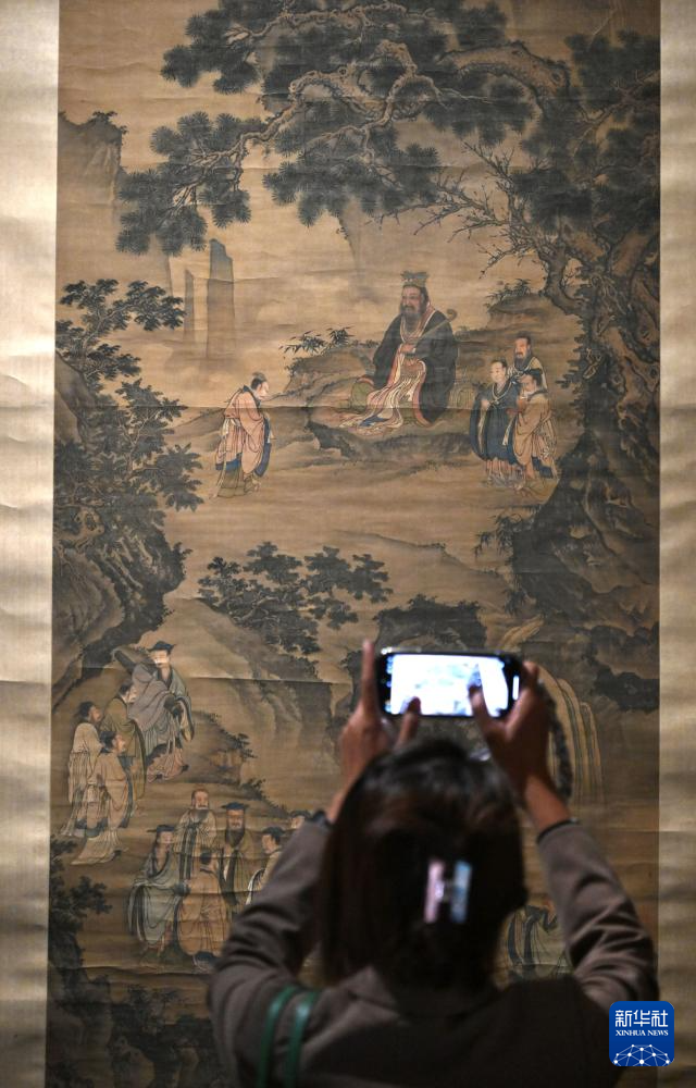 这是展出的明代孔子讲学图轴(9月29日摄)。