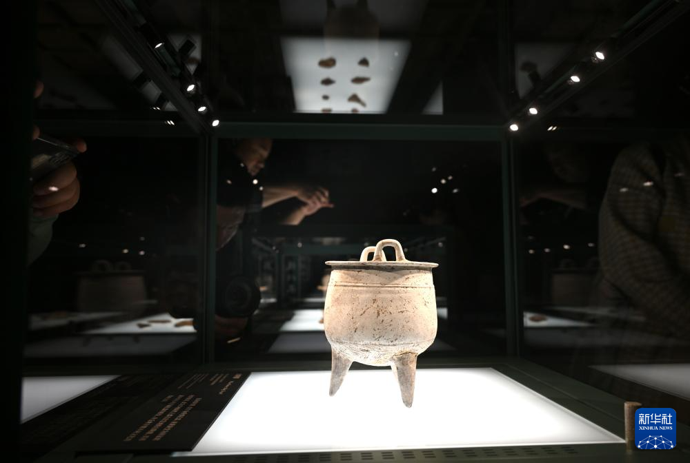 这是展出的商代白陶鼎(9月29日摄)。