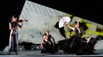 在香港演艺学院中国舞专业读大四的伍同学说:“当小提琴响起来时,我感到很震撼,书法的刚柔并济与弦乐的抒情性融合在一起,群舞的舞者动作既一致,又自由。”在光影迷离、水墨浓淡之间,回归舞蹈最本质的感动。