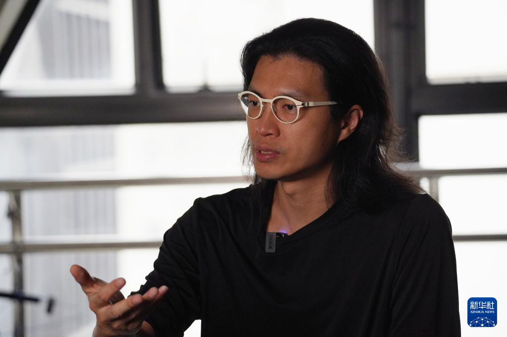 新媒体艺术家张瀚谦在接受记者采访(9月24日摄)。新华社发(谭佳铭 摄)