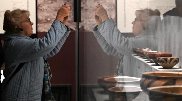 11月9日,游客在北京时代美术馆参观展览。