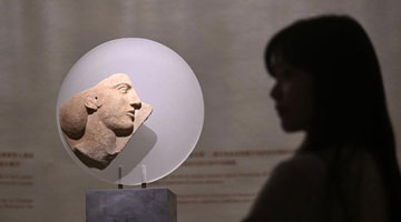 11月18日,在位于法国巴黎的吉美国立亚洲艺术博物馆,一名观众参观“中国·唐——一个多元开放的朝代(7至10世纪)”展览。