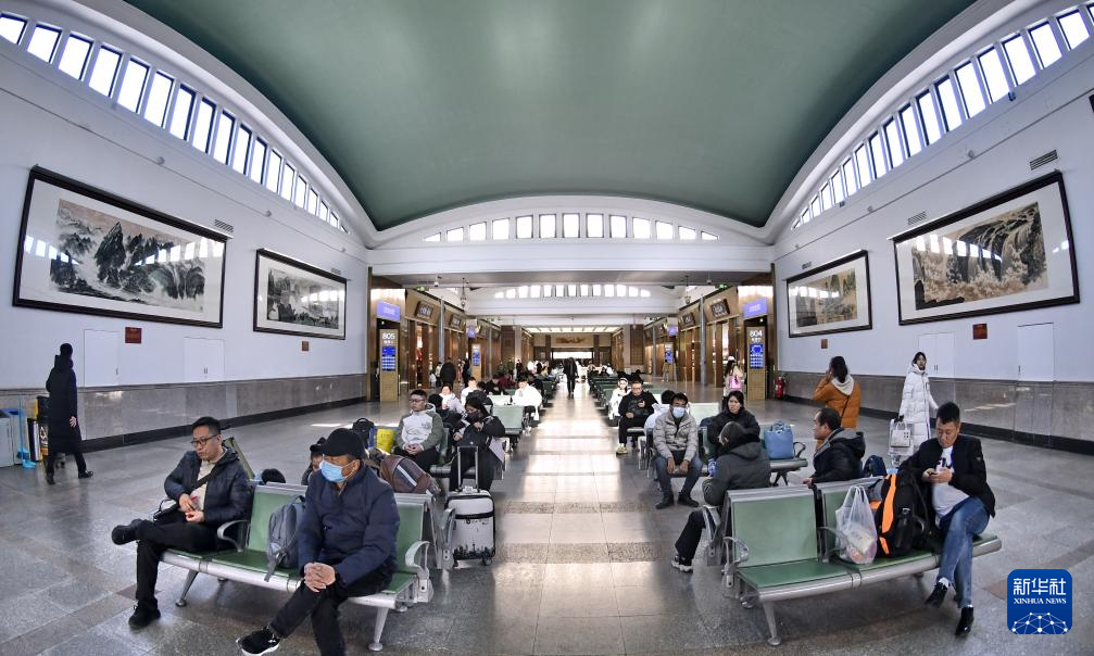 近日,北京火车站在各个候车室悬挂出精心修复后的名家名画,供旅客们观赏。