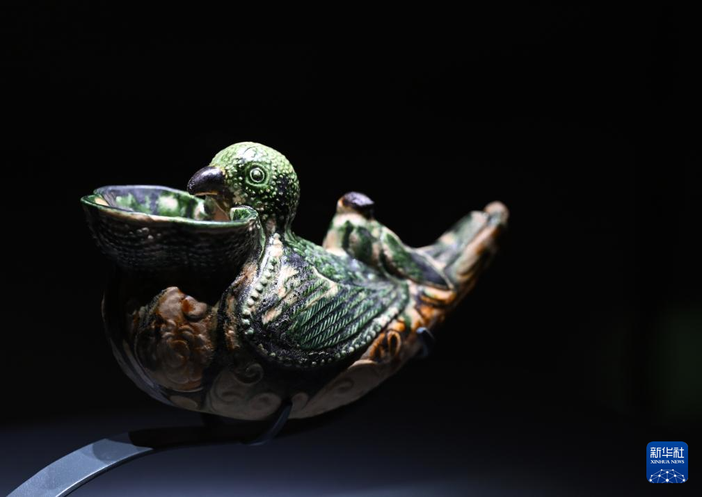这是展出的唐代三彩燕形杯(12月27日摄)。