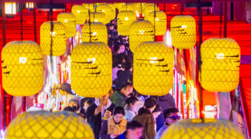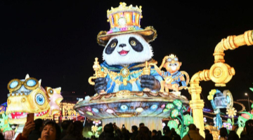 1月21日,在江苏省扬州市何园景区,游客开心地领取书法爱好者写的福字。