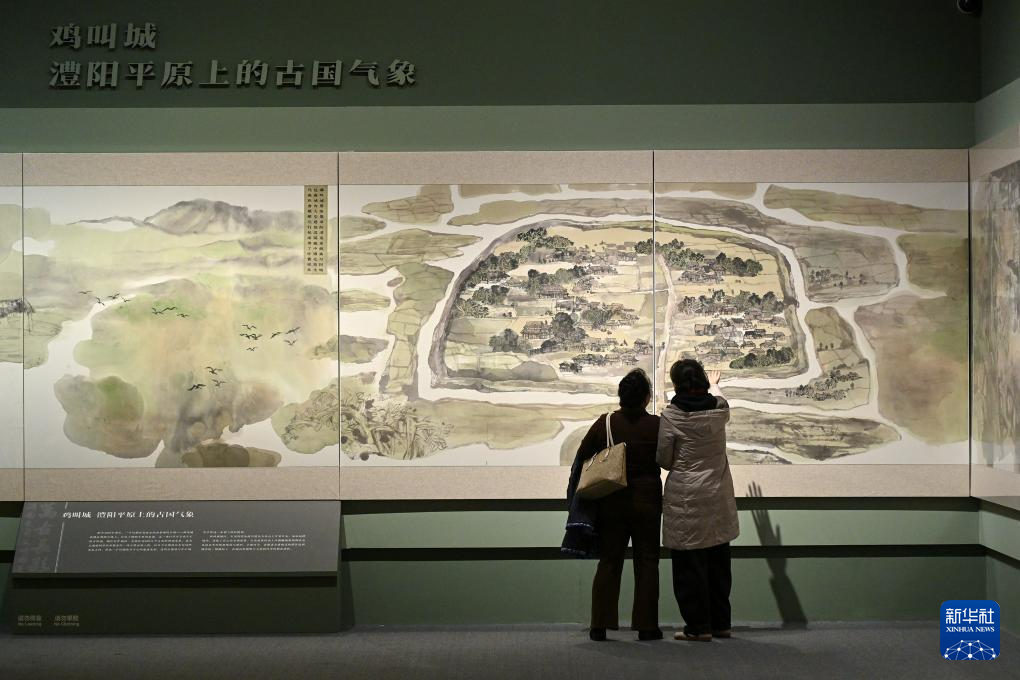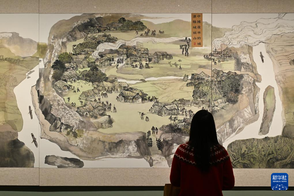1月21日,参观者在“万古长歌——湖南史前文明图卷展”上观看图卷。