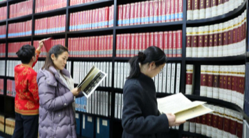 2月19日,柯翔祥在位于德清乾元镇的“缂金堂”内翻阅图册寻找灵感。