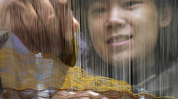 2月19日,缂丝师傅在位于德清乾元镇的“缂金堂”内制作水波纹产品。