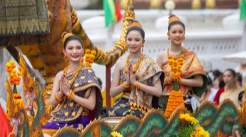 4月15日,在云冈石窟,身着传统服装的演员和游客互动。