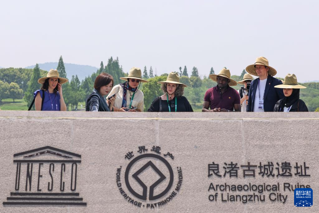 4月23日,参加第三届联合国教科文组织国际博物馆高级别论坛的嘉宾在参观良渚古城遗址公园。