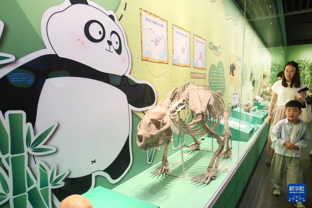 5月18日,家长带着孩子在江苏常州博物馆参观熊猫时代科普特展。