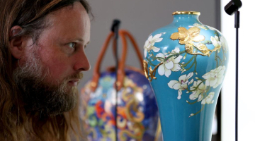 5月17日,残疾人工匠刘罗琳在活动现场制作竹丝扣瓷。