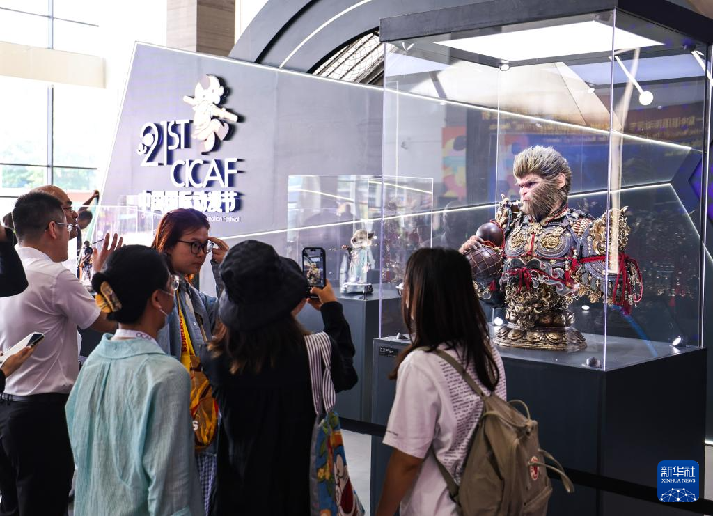 5月29日,观众在第二十一届中国国际动漫节现场参观黑神话悟空主题展陈。