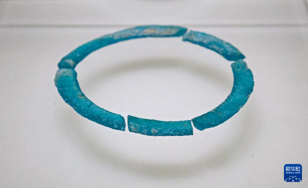 这是展出的淄博市博物馆藏战国琉璃环(6月10日摄)。