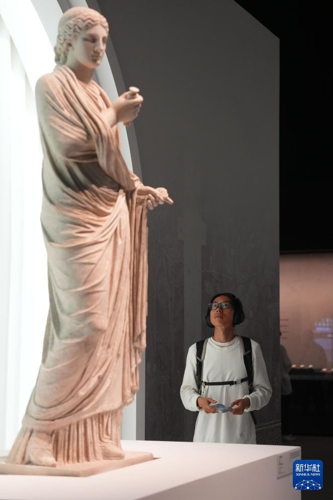 7月8日,参观者在湖南博物院“遇见庞贝:永恒之城”展览拍摄维纳斯女神雕塑。