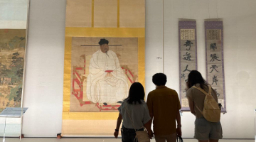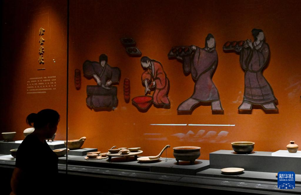 7月16日,参观者在汉魏洛阳故城遗址博物馆观看展品陶百花灯。