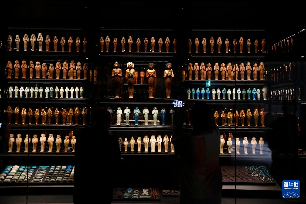 11月4日,在埃及吉萨的大埃及博物馆,游客在法老图坦卡蒙展馆参观。