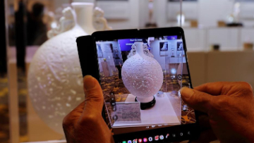 11月28日,在辽宁大连旅顺博物馆,媒体工作者拍摄展出的“明谕琉球国王敕”(仿制品)。新华社记者 李钢 摄
