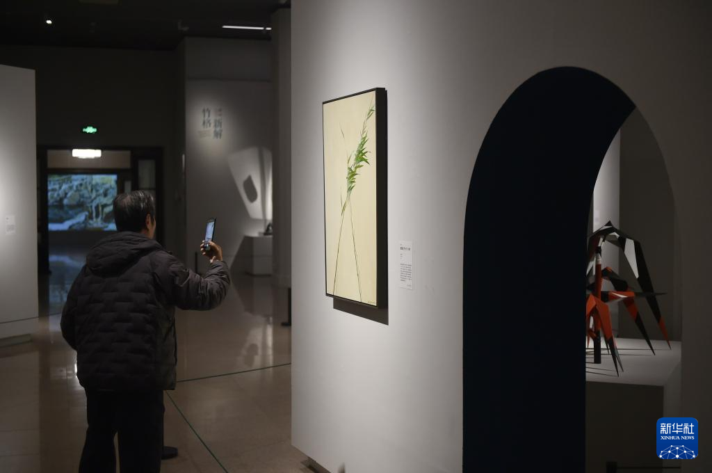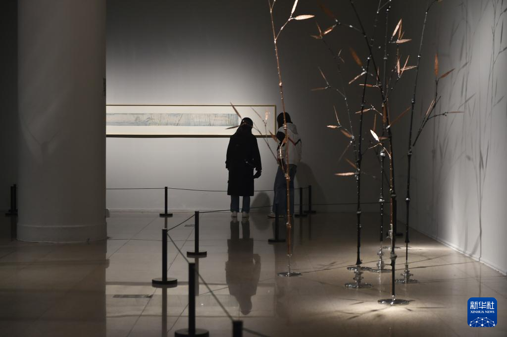 12月10日,观众在中国美术馆观赏展出作品《虹竹》。