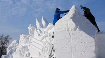 这是1月7日拍摄的阴山岩画艺术展开幕式现场。