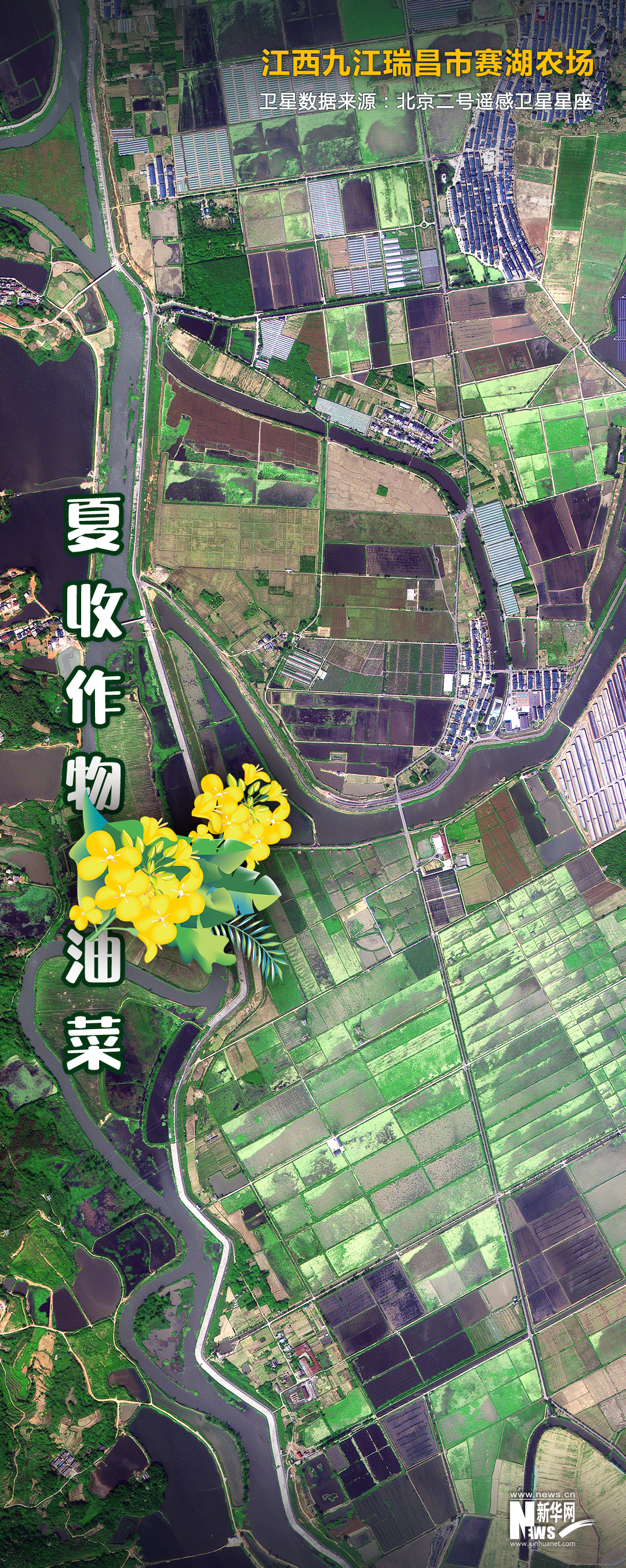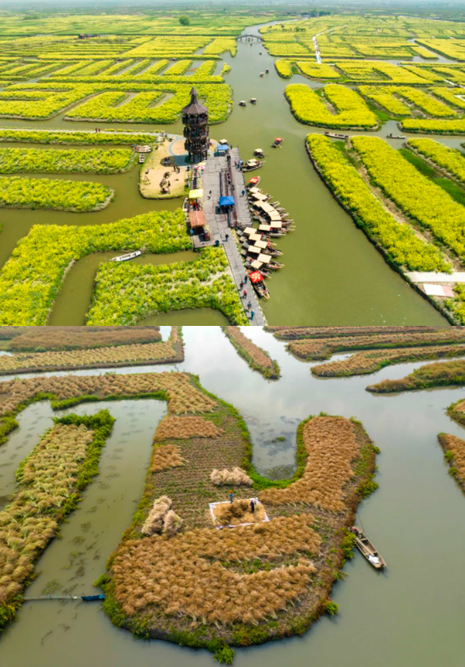 下图为5月28日,农民在千垛景区采收油菜籽。