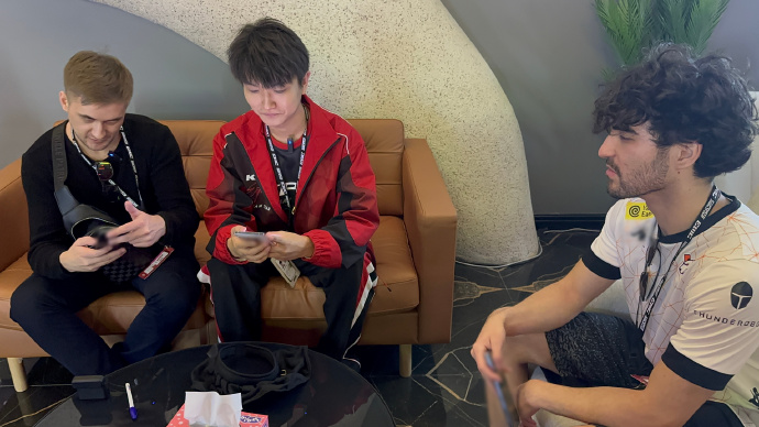 与其他国际队伍选手打乒乓球互动也成了KPL梦之队训练和比赛之余最爱参与的活动之一。除此之外,吴金翔(ID:清清)与教练唐田(ID:爱思)在沙特智慧宫国际中文教育利雅得学院参与交流;陈正正(ID:Cat)与东欧战队选手线下进行solo赛;李达亨(ID:小胖)、黄垚钦(ID:清融)、周诣涛(ID:钎城)等队员在场馆交流区学习阿拉伯语;赛前赛后杨涛(ID:无畏)、李达亨(ID:小胖)和其他队员们都大方展示英语……借助电子竞技这样快乐的交流每天都在发生。