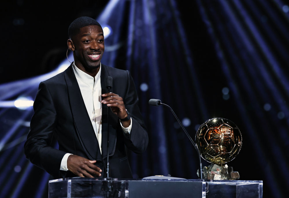 9月22日,登贝莱在颁奖仪式上。新华社记者 高静 摄