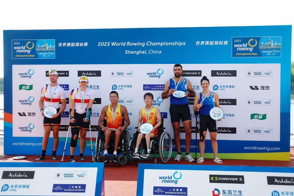 第三枚金牌则在第三个比赛日诞生,在残疾人项目上,中国队蒋继剑/刘爽在PR2级混合双人双桨决赛中夺冠。这对巴黎残奥会亚军组合在比赛中发挥出色,以明显优势夺冠。“把银牌变成金牌,除了坚持还是坚持。”蒋继剑赛后表示。