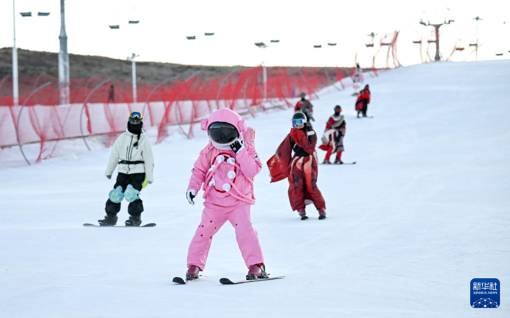 当日,在内蒙古乌兰察布市大河湾滑雪场,众多爱好者享受滑雪的乐趣。