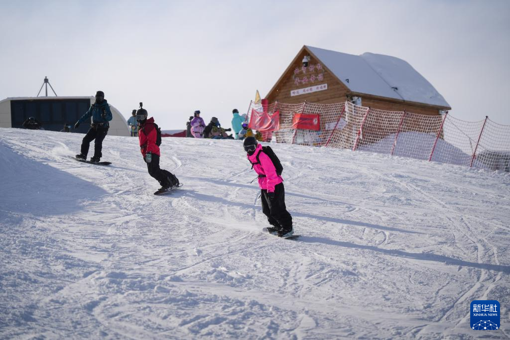 2月4日,滑雪爱好者在新疆阿勒泰地区禾木吉克普林国际滑雪度假区滑雪。