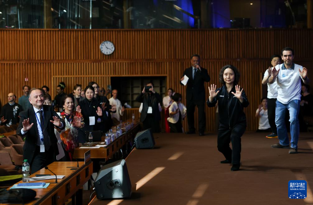 当地时间3月18日,首个“国际太极拳日”即将到来之际,以“健康生活,太极同行”为主题的庆祝活动在法国巴黎联合国教科文组织总部举行。来自中法两国的太极拳习练者同台献艺,展现太极拳的独特魅力与深厚内涵,向世界传播中华优秀传统文化和科学健康的生活方式。