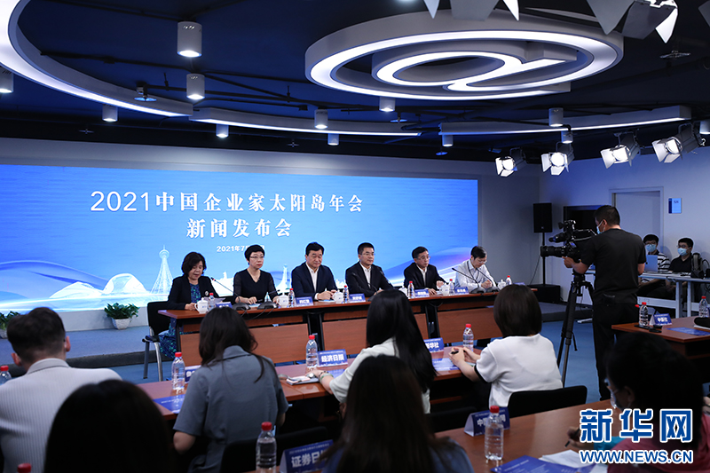 “2021中国企业家太阳岛年会”新闻发布会现场。新华网 陈延特摄