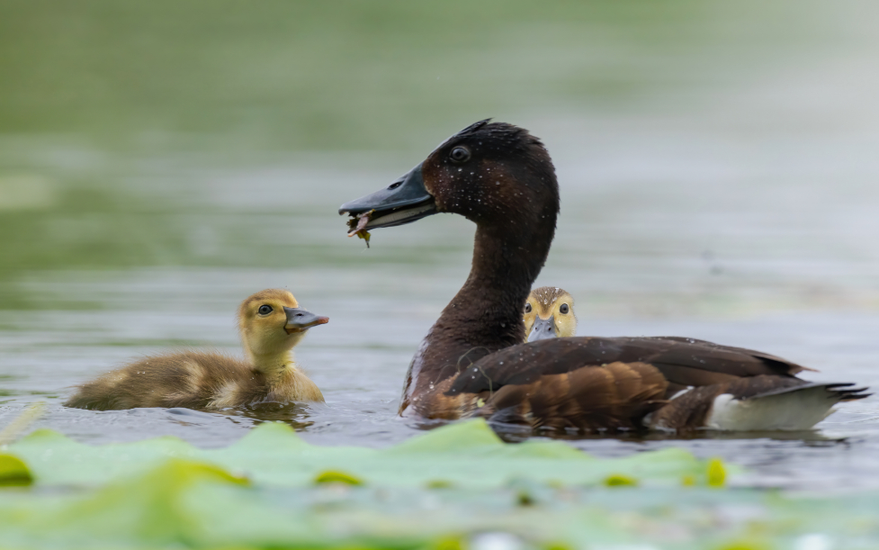 青头潜鸭育雏 牛郢生摄(国家林草局供图)
