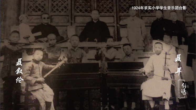 聶耳的媽媽是傣族人,特別喜歡云南的花燈,還有云南的一些民間音樂,傣族民歌。當時聶耳的母親都會在睡覺前給比較調皮的聶耳演唱,所以聶耳是在媽媽的音樂的熏陶下成長起來的。有一個四川的鄰居是個木匠,這個木匠特別喜歡音樂,他會吹一手好的竹笛。他教聶耳吹竹笛,丘木匠也算是聶耳的一個啟蒙音樂老師吧。他會自己手工制作竹笛,他送了聶耳竹笛,開啟了聶耳先生的音樂之門。而且三哥,就是我的外公也和聶耳在學校里面組織了一個民樂團?,F(xiàn)在你們到翠湖還可以看到很多的人會在那載歌載舞,有管樂團、有唱歌的,我們開玩笑說那個時候就是聶耳的一個竹笛,我的外公一把三弦或者一個二胡走天下。他們就經常跑到翠湖去演奏,很多圍觀的人啊。這算是他們的一個音樂實踐的地方,也是他們很快樂的童年。