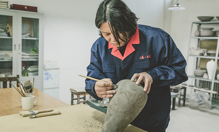 定瓷產(chǎn)業(yè)的發(fā)展,主要取決于年輕人才的輸入;然而定瓷之所以被列入非遺,很重要的一個(gè)原因就是它的從業(yè)人員越來(lái)越少,面臨著斷代的危機(jī)。河北省曲陽(yáng)陳氏定窯瓷業(yè)有限公司成立時(shí),我是第一批工人,和我同時(shí)被錄用的有11個(gè)人,到現(xiàn)在只剩下了我一個(gè)。作為一門(mén)傳統(tǒng)的手藝要學(xué)精、學(xué)好,沒(méi)有十年、八年的工夫根本做不到;同時(shí)它又是個(gè)力氣活,你看著挺新鮮、挺好玩的,一個(gè)動(dòng)作真的讓你重復(fù)幾十萬(wàn)遍,首先就要克服心理上的寂寞感。所以,只有有信念的人、真正喜歡的人,才能真正的堅(jiān)持下去。慶幸的是,隨著國(guó)家的發(fā)展、物質(zhì)積累越來(lái)越豐厚,人們不斷地探尋著精神層面的滿(mǎn)足感,一些有擔(dān)當(dāng)?shù)哪贻p人開(kāi)始通過(guò)勞動(dòng)創(chuàng)造實(shí)現(xiàn)自我價(jià)值。這是我在十幾年前無(wú)法想象的。時(shí)尚和傳統(tǒng)不是對(duì)立的,如今傳統(tǒng)文化的魅力正在吸引著一批又一批有擔(dān)當(dāng)?shù)哪贻p人傳承并創(chuàng)新著當(dāng)代的新時(shí)尚。