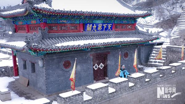 置身娘子關(guān)雄偉的城樓側(cè)耳聆聽(tīng),天地間惟有風(fēng)聲雪聲。楊東/攝
