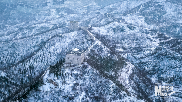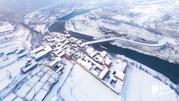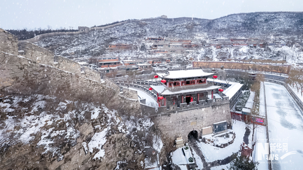 俯瞰暴雪過(guò)后的娘子關(guān)全景。古城堡依山傍水,居高臨下,關(guān)門兩座,護(hù)佑四方。楊東/攝