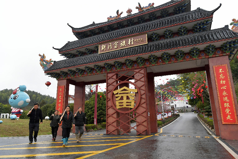 穿過(guò)江西省資溪縣烏石鎮(zhèn)新月畬族村牌樓,青山綠樹環(huán)抱村莊,白墻褐瓦的畬寨整齊排列,不時(shí)有炊煙飄出。位于閩贛交界處的新月村,過(guò)去曾是武夷山區(qū)閉塞落后的“茅棚村”,如今已成為遠(yuǎn)近聞名的小康村。