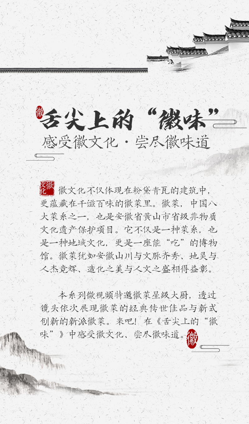 ????? ??徽州刀板香是徽菜的代表作之一,也是徽州人待客的一道主菜。它的主要食材是腌制的咸肉,把咸肉燜煮后撈出置于香樟木板上,多余的油脂被木板吸走,只保留肉的咸鮮,再搭配新鮮的小野筍,吃起來(lái)肥而不膩,唇齒留香。