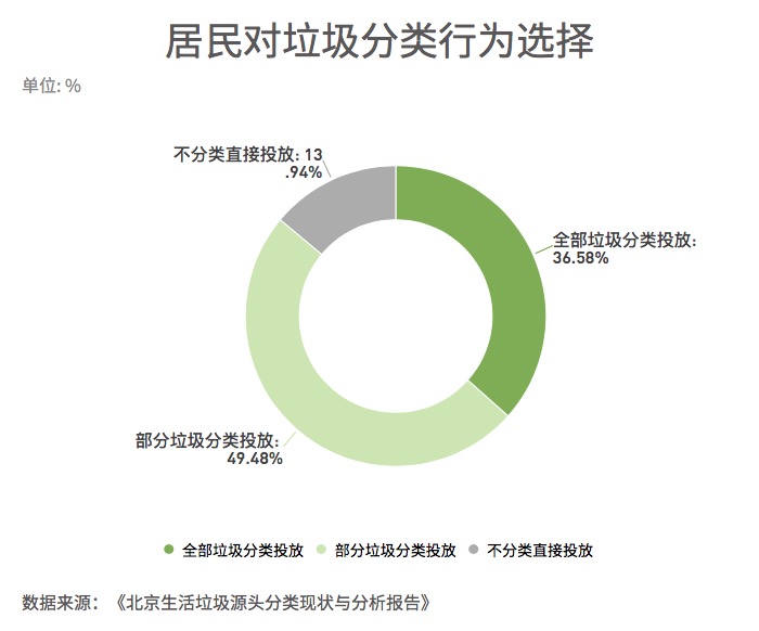 ??? 對(duì)于目前如何處理生活垃圾的問(wèn)題,調(diào)查結(jié)果表明36.58%的居民能做到每次都將全部垃圾分類投放,49.48%的居民偶爾分類處理或者僅對(duì)部分垃圾分類投放,而13.94%的居民不分類直接投放。