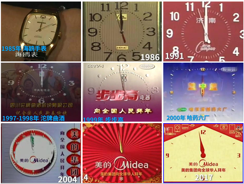 在2011年之前,歷年春晚不乏形式多樣的廣告,比如“企業(yè)賀電廣告”、片尾鳴謝字幕廣告、冠名廣告和報(bào)時(shí)廣告等。其中報(bào)時(shí)廣告最受矚目,報(bào)時(shí)廣告一般出現(xiàn)在春晚開播的時(shí)候以及零點(diǎn)倒計(jì)時(shí),畢竟在那時(shí),所有的觀眾都盯著鐘表上的秒針一點(diǎn)一點(diǎn)朝著“12”這個(gè)數(shù)字走去,這個(gè)露出絕無僅有。