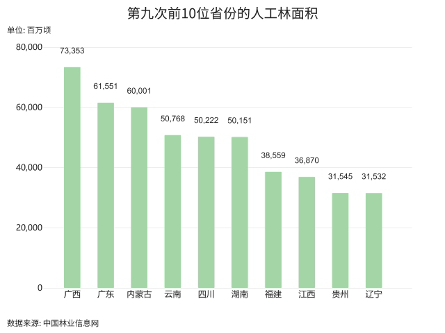 ??? 根據(jù)《2020年中國國土綠化狀況公報》顯示,全國完成造林677萬公頃、森林撫育837萬公頃。40多年來,我國森林面積、森林覆蓋率、森林蓄積分別增長1倍左右,對全球植被增量的貢獻比例居世界首位。