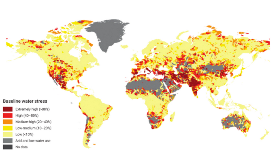 ??? 聯(lián)合國(guó)水機(jī)制(UN-water)在2020年的世界水日發(fā)布了《世界水發(fā)展報(bào)告》。報(bào)告顯示,全球用水量在過(guò)去的100年里增長(zhǎng)了6倍,水資源的需求正在以每年1%的速度增長(zhǎng);并根據(jù)世界各地區(qū)地表水、地下水抽取的水量與可用總水量的比值,制作了全球年度基準(zhǔn)水壓力圖:目前全球有 36 億人口(將近全球一半的人口)居住在缺水地區(qū)。到21世紀(jì)中葉,將有超過(guò)20億人生活在水資源嚴(yán)重短缺的國(guó)家,約40億人每年至少有一個(gè)月的時(shí)間遭受?chē)?yán)重缺水的困擾,且將會(huì)有22個(gè)國(guó)家面臨嚴(yán)重的水壓力風(fēng)險(xiǎn)。