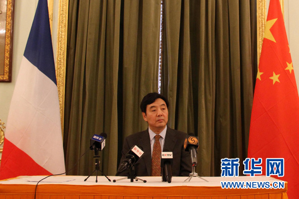 ??? 3月21日,中國(guó)駐法國(guó)大使翟雋接受駐法中文媒體聯(lián)合采訪。中國(guó)駐法國(guó)大使翟雋日前就習(xí)近平主席訪法接受駐法中文媒體聯(lián)合采訪時(shí)表示,這次訪問(wèn)是中法建交50周年慶?;顒?dòng)的高潮,是一次具有歷史意義的訪問(wèn),將推動(dòng)中法全面戰(zhàn)略伙伴關(guān)系再上新臺(tái)階。新華社記者鄭斌攝