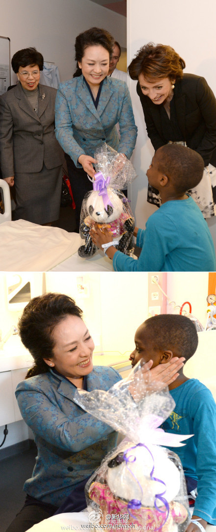 ????新華網(wǎng)北京3月27日電 據(jù)新華社“新國(guó)際”微博報(bào)道,習(xí)近平主席夫人彭麗媛26日下午在世界衛(wèi)生組織總干事陳馮富珍、法國(guó)社會(huì)事務(wù)和衛(wèi)生部長(zhǎng)圖雷納的陪同下,訪問(wèn)了位于巴黎市區(qū)的尼克爾兒童醫(yī)院。