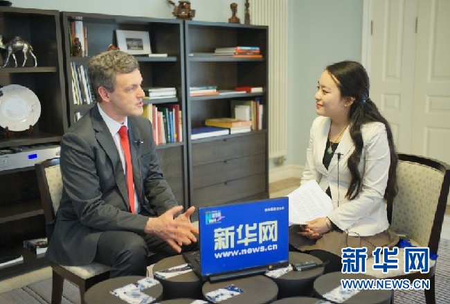 比利時王國駐華大使馬懷宇接受新華網專訪。新華網記者郭小天攝