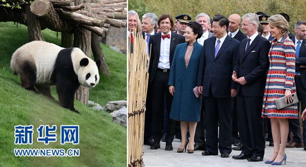 ????3月30日,國家主席習(xí)近平和比利時(shí)國王菲利普共同出席比利時(shí)天堂公園大熊貓園開園儀式。這是習(xí)近平和夫人彭麗媛同菲利普國王夫婦、比利時(shí)首相迪呂波等參觀大熊貓園(拼版照片)。 新華社記者 姚大偉 攝